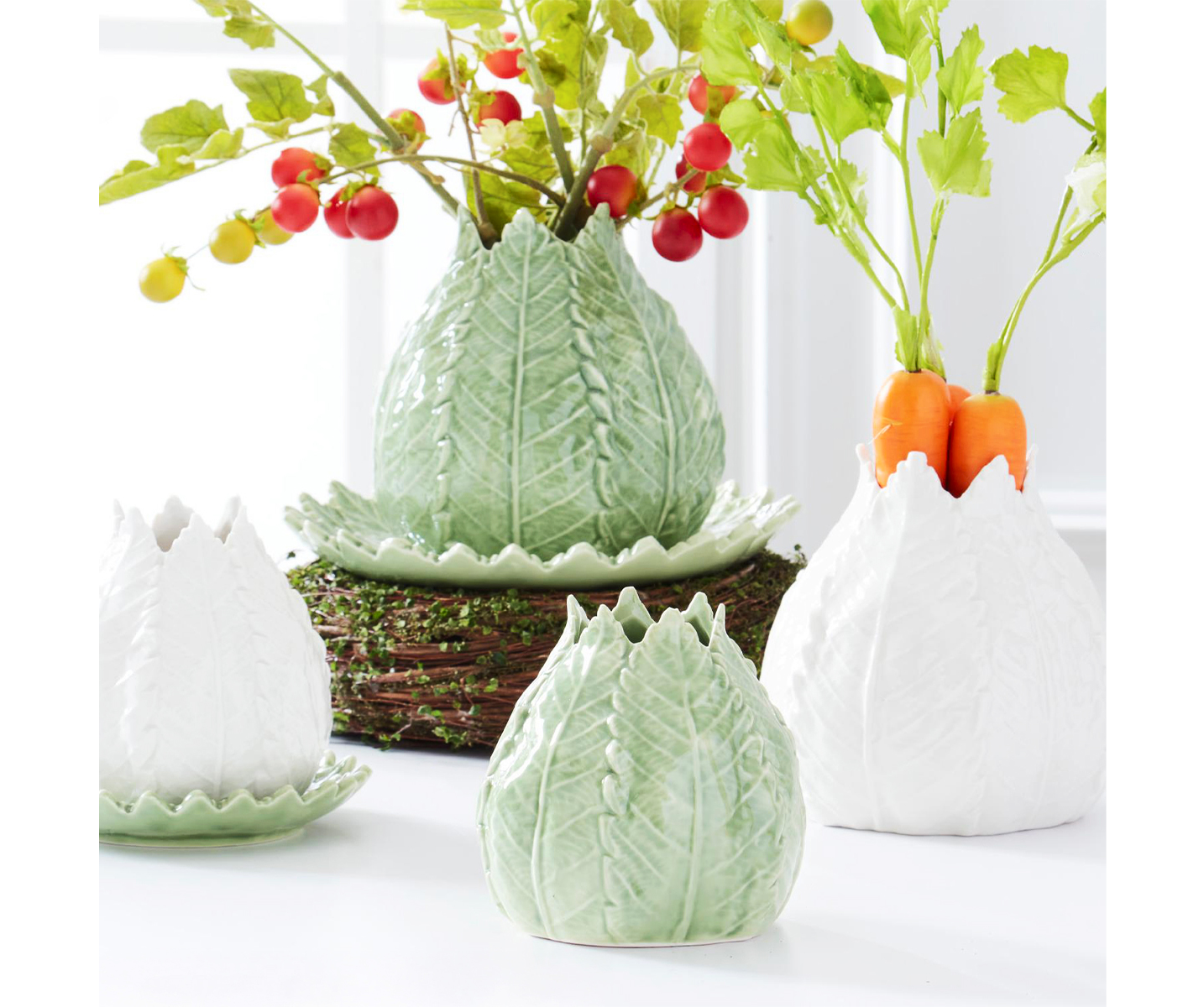 GREEN CERAMIC LEAF VASE Ø13XH12 CM
