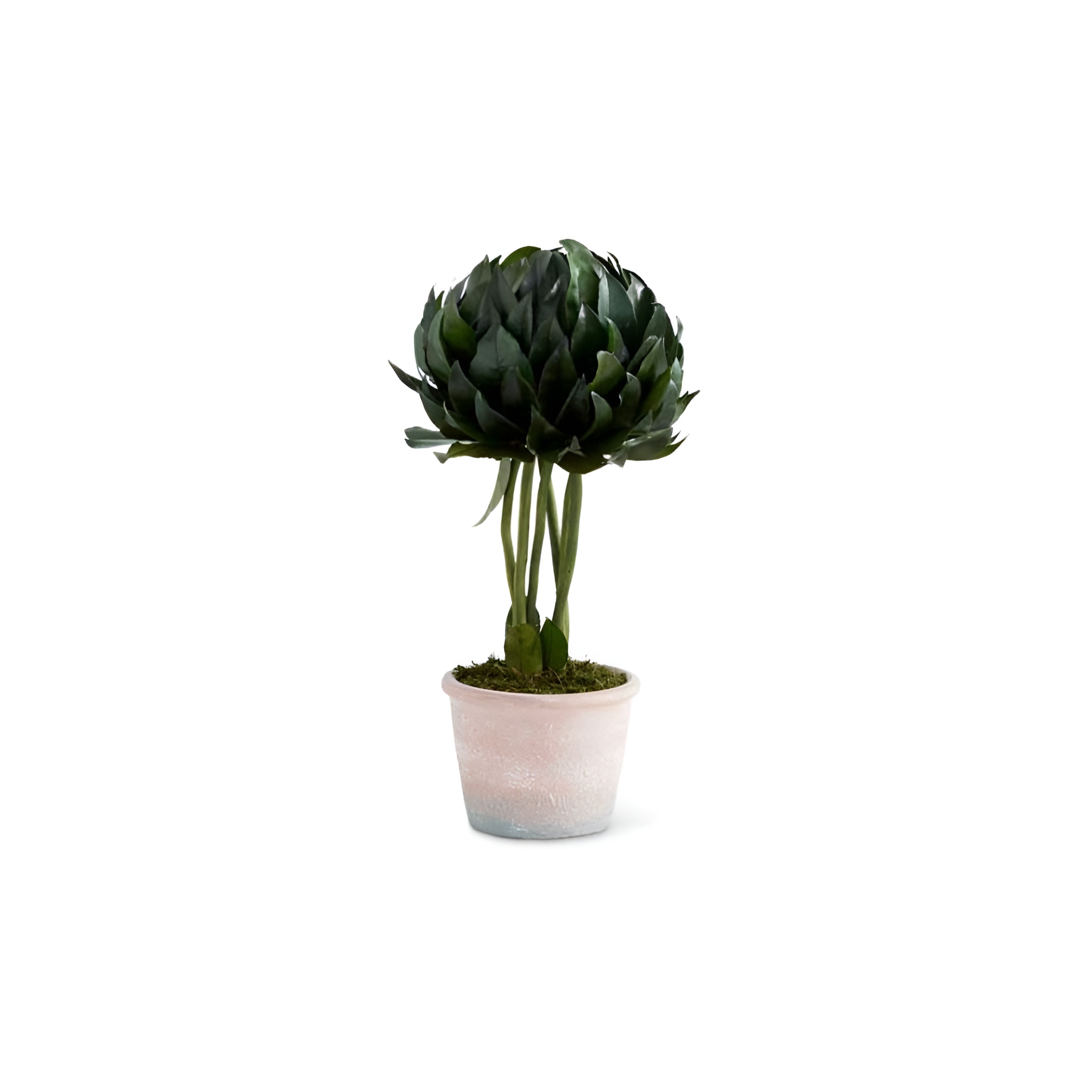 Realistic Magnolia bud decorative plant in a terracotta pot. With its sculptural shape and detailed foliage, it adds refined botanical elegance to workspaces and living areas without the need for care.